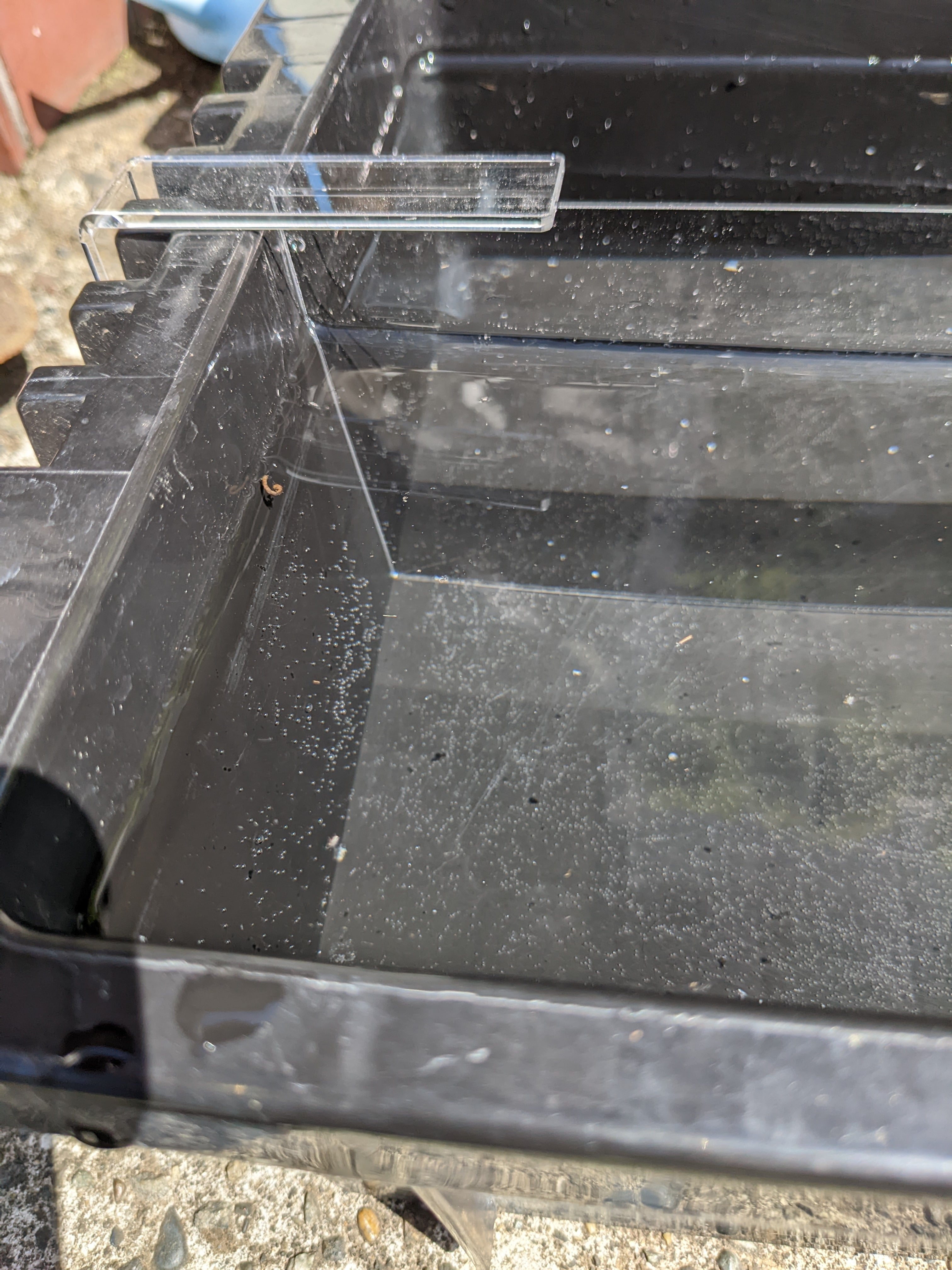 横に仕切るより縦に仕切る方が管理し易い為、縦型に変更。飼育容器に光が効率よく入る用、黒から透明に変更。